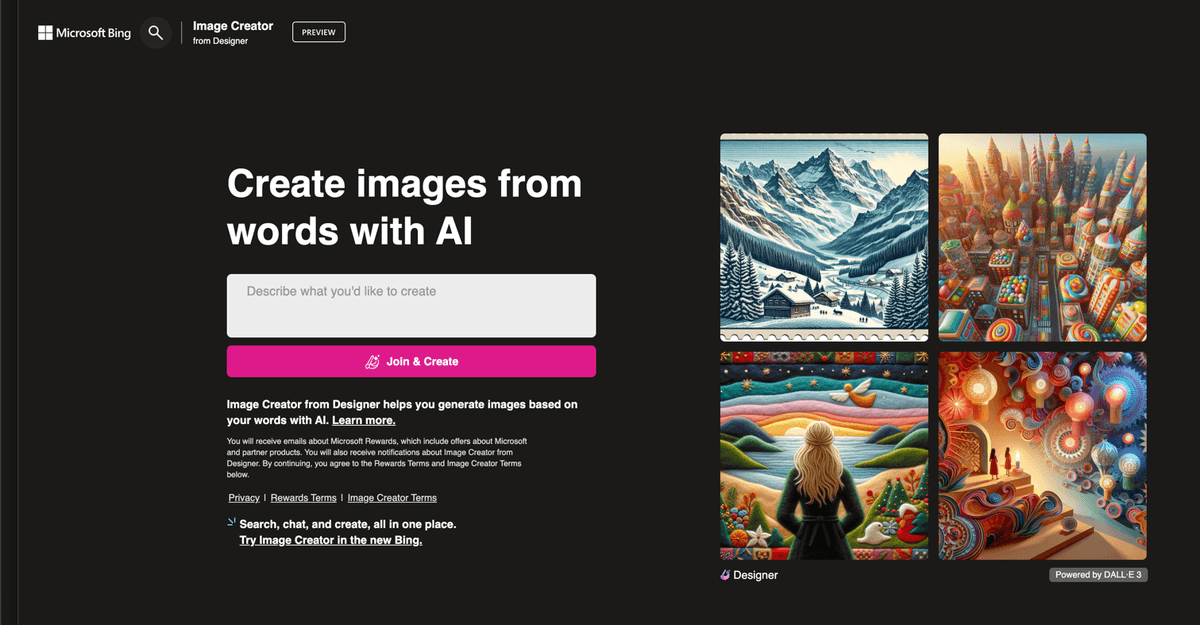 Bing Image Creator Website