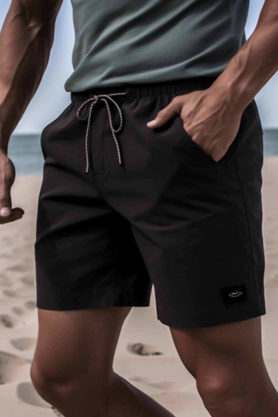 swim shorts , black tonal style, minimalist elements --ar 2:3 --s 750 --style raw