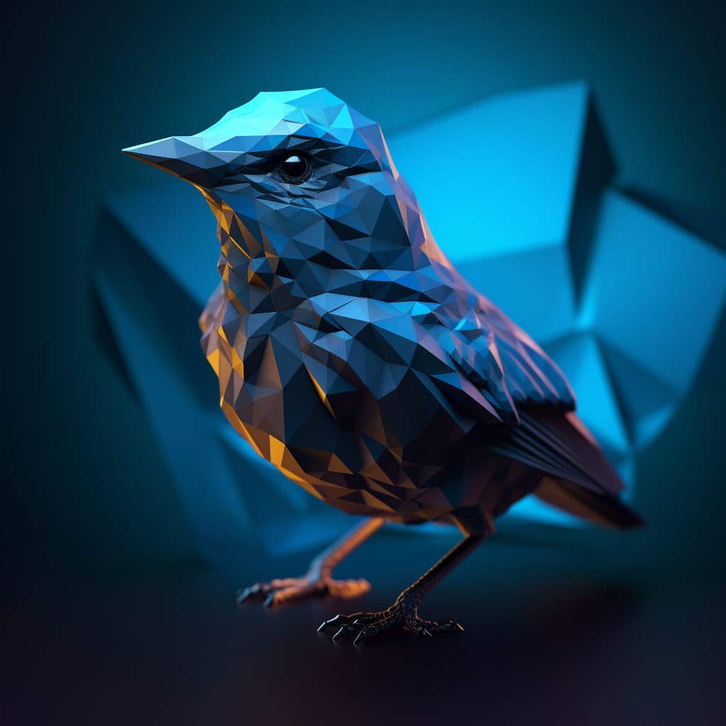 cute Mountain Bluebird reimagined in a 3D fractal polygon geometry style, glinting in a dark environment --s 250 --style raw