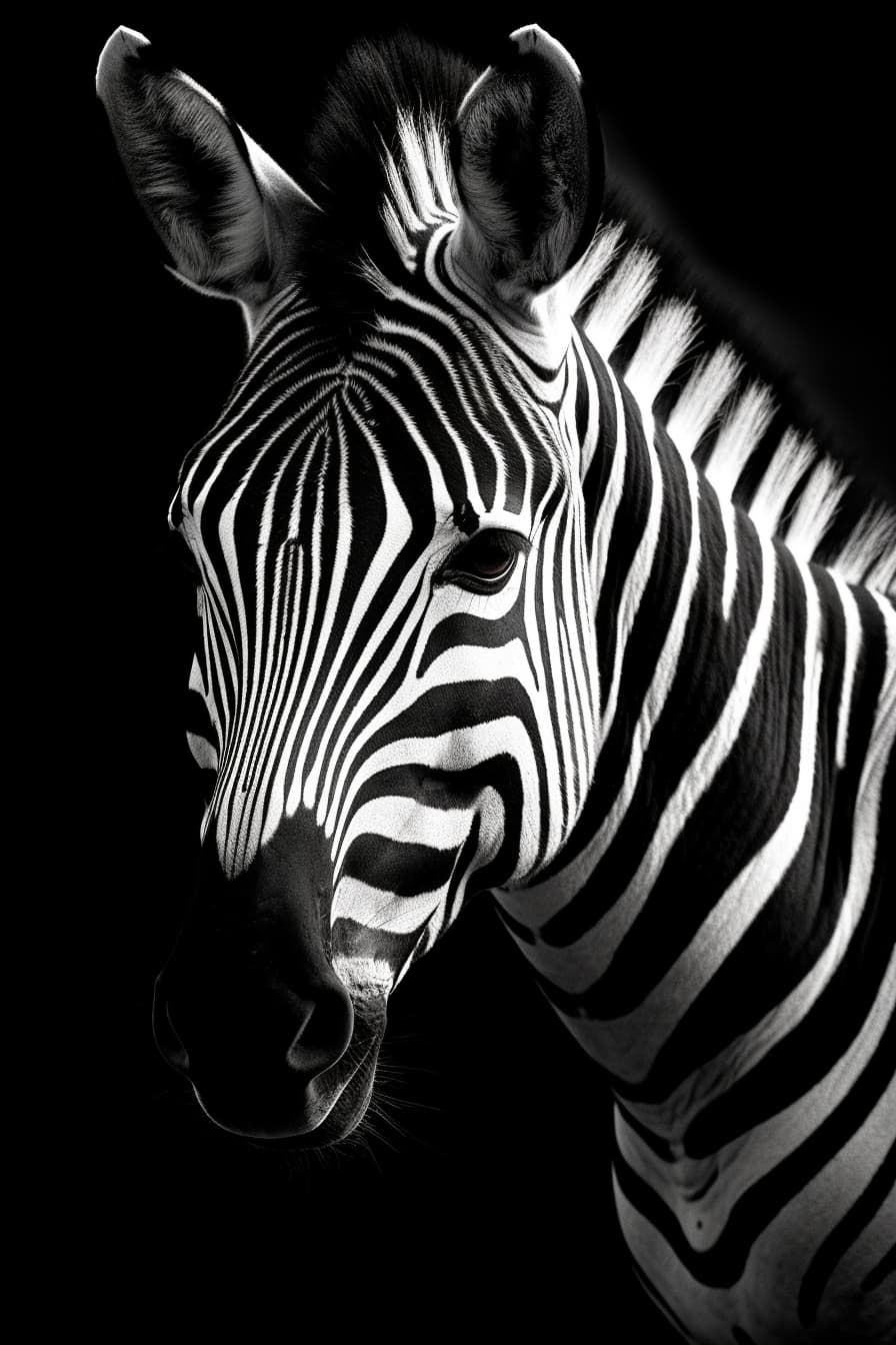 the zebra is black and white, in the style of intense color saturation, playful and fun imagery, bold shadows, contrasting shadows --ar 2:3 --s 250 --style raw