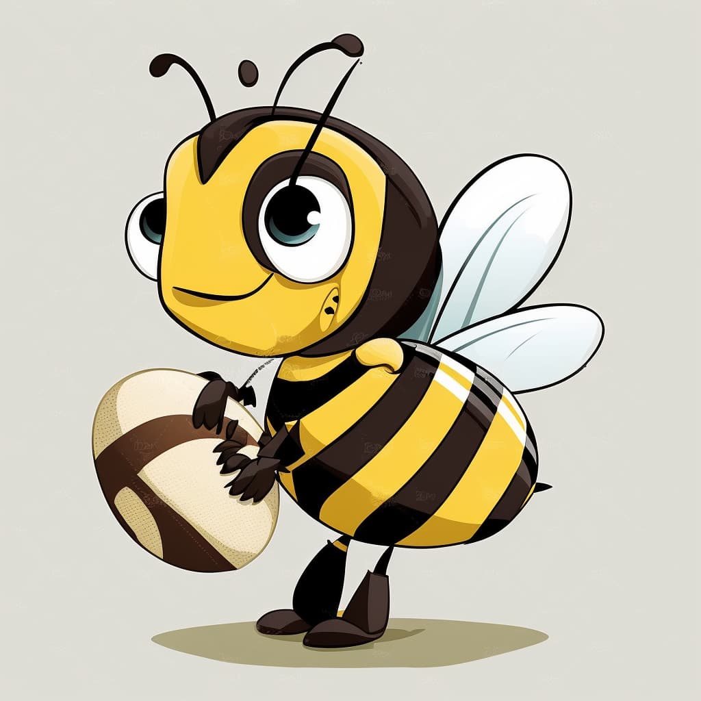 bee holding football stock vector art illustration, in the style of uhd image, eye-catching, cicely mary barker, rounded, tex avery, smilecore, calculated --v 4 --s 250