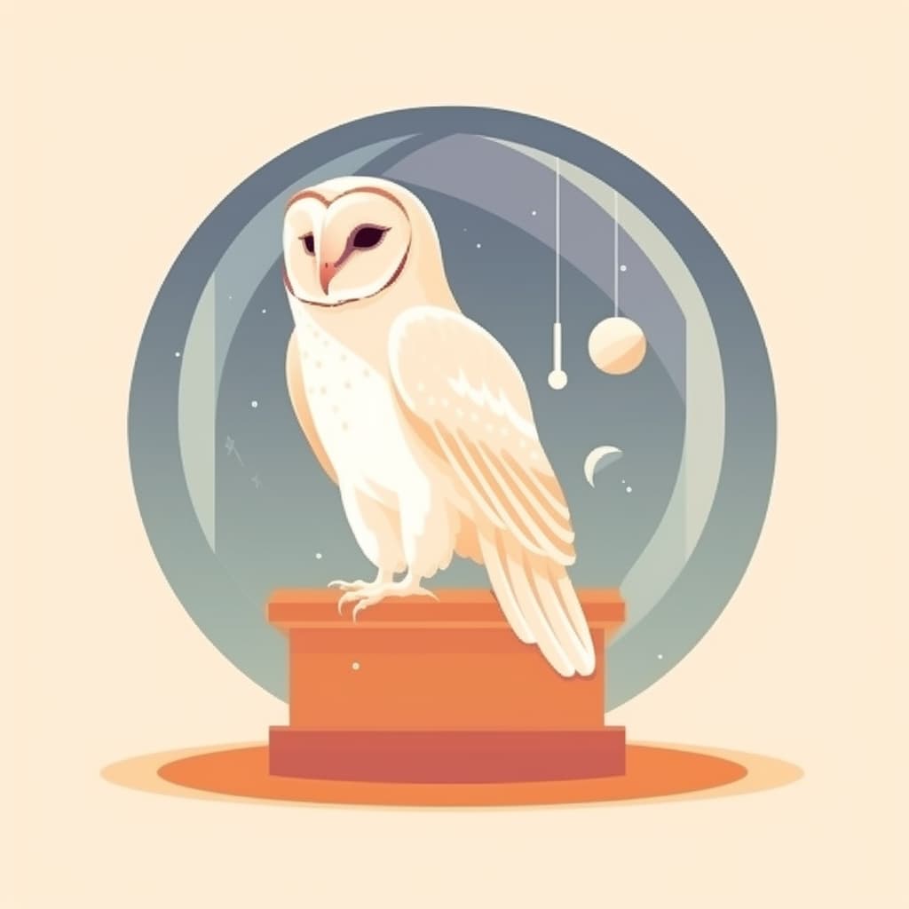 A barn owl next to a crystal ball trying to divine the future, flat design, light unicolor background --s 250 --style rawPortraits
