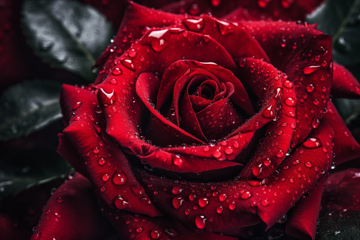 wallpaper & backgrounds for red rose wallpaper, in the style of caras ionut, water drops, cross-processing/processed, fujifilm xf 35mm f/1.4 r, brooding mood, maria sibylla merian, lush and detailed --ar 3:2