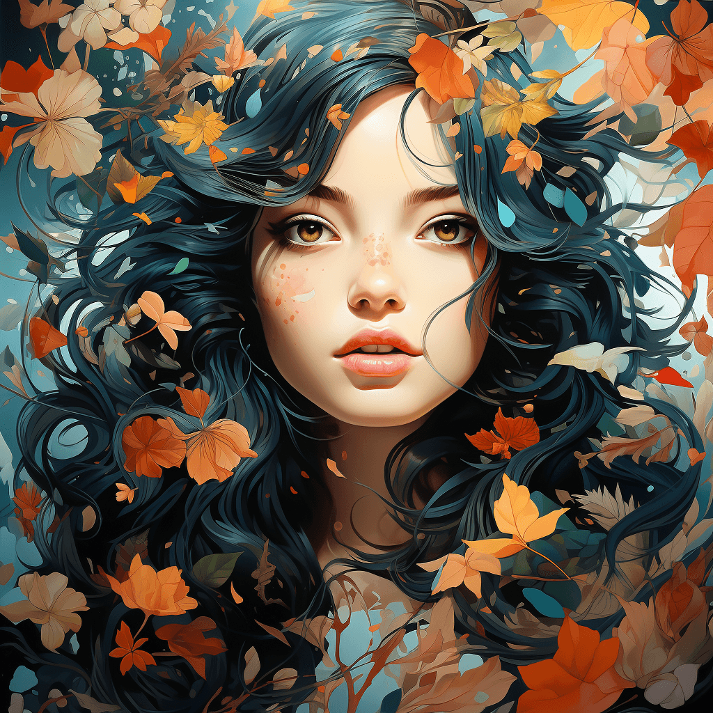 Psychedelic art of a beautiful face japanese style in a world full of cherrytree leaves,16K Ultra HD --s 750 --v 5.2