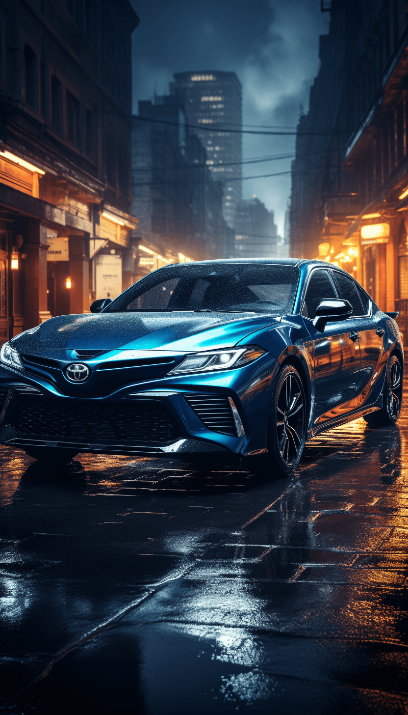 toyota camry hybrid blue in the rain, in the style of schlieren photography, raw and edgy, 8k, glowwave, post-minimalist --ar 4:7 --s 750 --v 5.2