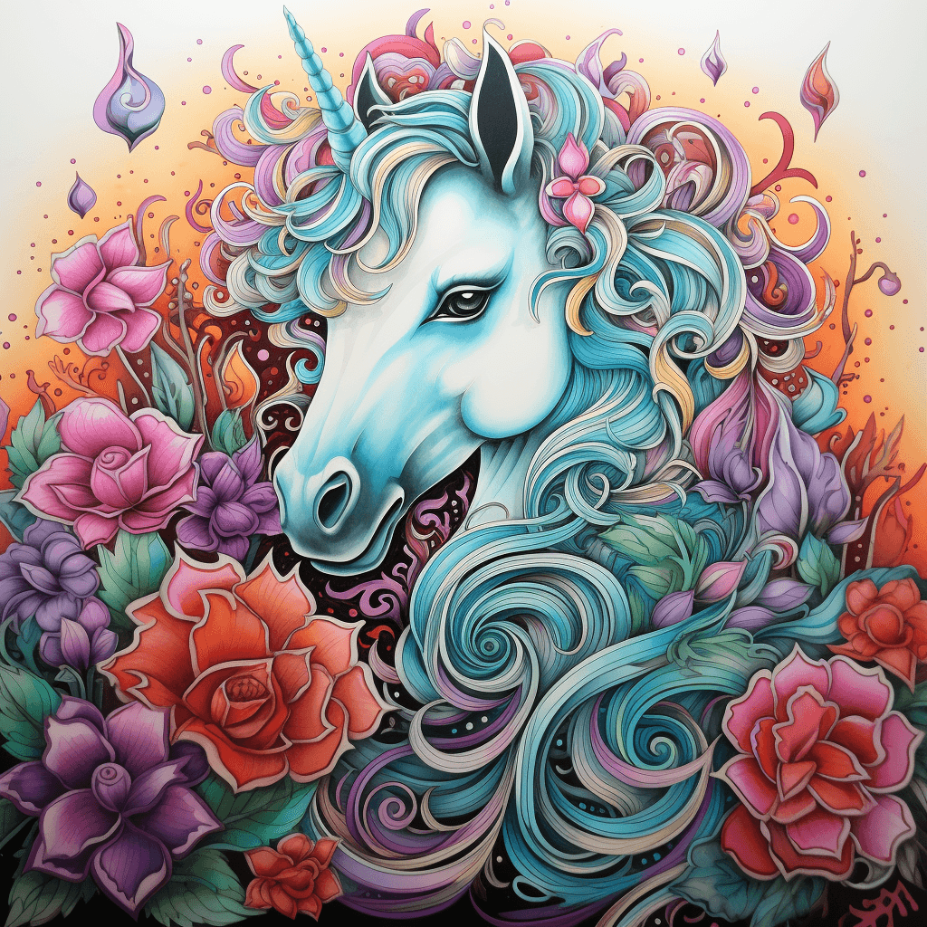 more advanced unicorn coloring book with rainbow in the background. --v 5.2 --s 250