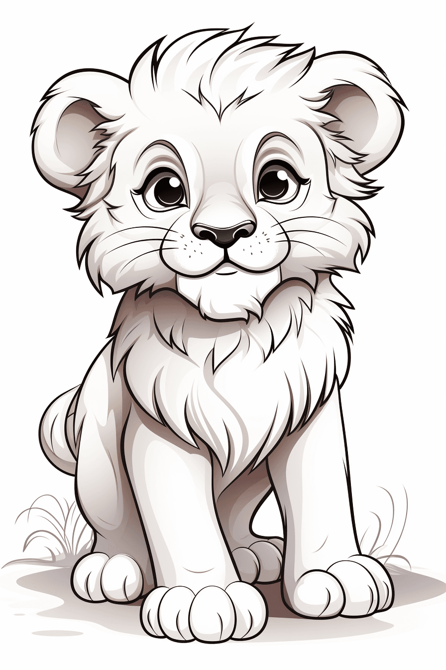 black and white coloring pages for children, very cute, lion with big mane and bushy fur , --ar 2:3 --s 250 --v 5.2