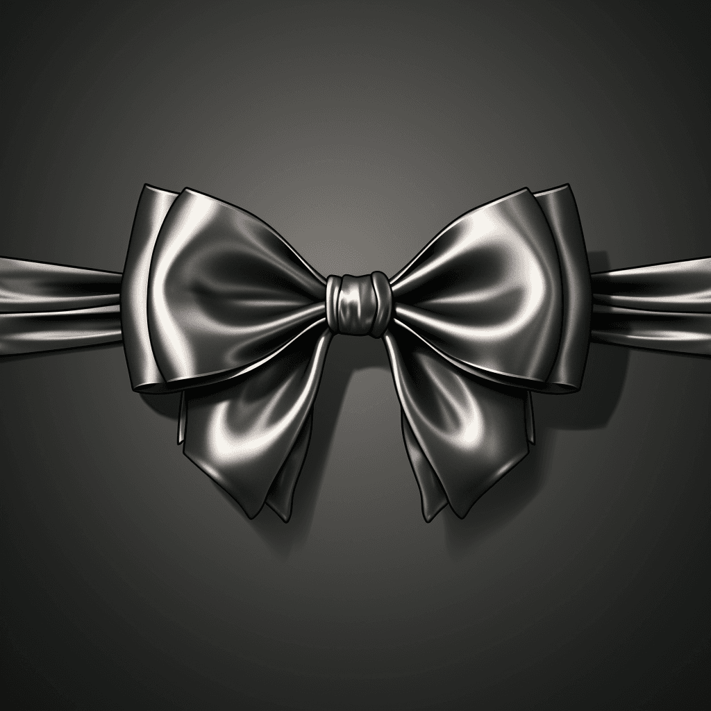design a logo black bow with silver trim. black backgroung. simple colour. --s 750 --style raw --v 5.2