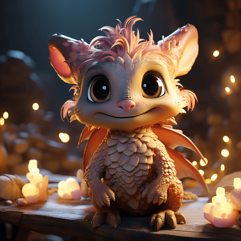 cute dragon in the backround lights, illustration, creating a magical and whimsical atmosphere magic warm light--ar 3:2 --s 750 --v 5.2